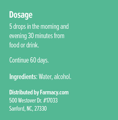- Drop 10 drops (or recommended dosage) under tongue, morning and night.
